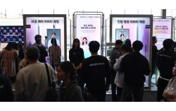 지난해 12월 30일 서울 강남구 코엑스에서 열린 '독자 AI 파운데이션 모델' 프로젝트 1차 발표회에서 참석자들이 네이버클라우드 부스를 체험하고 있다. 연합뉴스 우리나라 독자 인공지능(AI) 파운데이션 모델 개발 사업의 1차 평가에서 탈락한 네이버클라우…