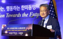 지난해 9월 17일 조셉 윤 주한미국 대사대리가 서울 중구 웨스틴조선호텔에서 열린 제25-1차 한미동맹컨퍼런스에서 기조연설을 하고 있다. 연합뉴스 조셉 윤 전 미국 국무부 대북정책 특별대표가 윤석열 전 대통령 탄핵 국면 당시의 한국 내 상황과 향후 북미 관계에 대…