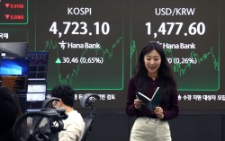 14일 오후 서울 중구 하나은행 본점 딜링룸 현황판. 이날 미국 달러대비 원화값은 전날보다 3.8원 내린(환율 상승) 1477.5원에 마감했다. 국제 유가 하락에도 원화 약세로 수입 물가는 지난해 6개월 연속 올랐다. 새해엔 원화값이 달러당 1480원 …