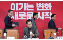 장동혁 국민의힘 대표(가운데)가 8일 오전 국회에서 열린 최고위원회의에서 회의 준비를 하고 있다. 임현동 기자 국민의힘이 전 당원을 대상으로 한 여론조사를 통해 당명 개정 추진 여부를 결정하기로 했다. 국민의힘은 8일 보도자료를 내고 오는 9∼11일…