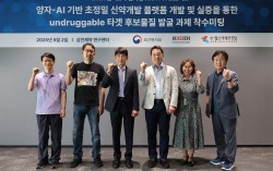 좌측부터 ▲GIST 김현우 교수 ▲퀀텀인텔리전스 김케빈 이사 ▲삼진제약 연구센터장 이수민 전무. ▲서울대학교병원 고영일 교수 ▲나무ICT 이진희 부소장 ▲K-헬스미래추진단 이창복 PM 삼진제약은 보건복지부와 한국보건산업진흥원 K-헬스미래추진단이 추진하는 …