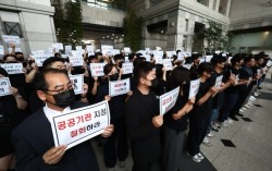 금융감독원 노동조합 조합원들이 9일 오전 서울 여의도 금융감독원 로비에서 금감원 내 금융소비자보호처 분리 및 공공기관 지정 등 최근 금융감독체계 조직 개편 반대 시위를 하고 있다. 뉴스1 금융감독원 직원 수백 명이 검은 옷을 입고 출근했다. 정부 조직개편…
