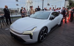 8일(현지시간) 독일 뮌헨의 한 행사장에서 열린 폴스타의 VIP행사에서 폴스타5가 공개되고 있다. 김효성 기자 폴스타의 퍼포먼스 전기세단 ‘폴스타5’가 8일(현지시간) 독일 뮌헨에서 열린 폴스타 VIP행사에서 처음 공개됐다. 폴스타5는 포르쉐 타이칸을 경…