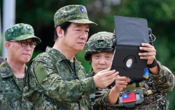 라이칭더 대만 총통(왼쪽에서 두번째)이 지난달 14일 가오슝에서 중국의 침공 가능성에 대비한 훈련인 '한광 훈련' 에서 드론이 촬영한 영상을 모니터로 살펴보고 있다. EPA=연합뉴스 대만이 향후 2년간 약 5만대의 미국산 무인기(드론)을 사들이기로 했다.…