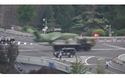 지난 16일 승전 80주년 9·3 열병식 예행연습을 위해 FH-97 스텔스 드론으로 추정되는 무기가 천안문 방향으로 이동하고 있다. 신경진 특파원 오는 9월 3일 중국 천안문 앞에서 펼쳐질 열병식에서 육·해·공 드론과 레이저포 등 첨단 전략 무기를 처음으로 선보인…