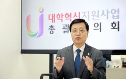 지난달 26일 충남 천안 남서울대 사무실에서 이주열 대학혁신지원사업 총괄협의회장이 대학 혁신 지원 사업에 대해 설명하고 있다. 사진 남서울대 수도권의 한 사립대는 2019년부터 정부로부터 예산을 지원받아 원격 수업이 가능한 강의실을 꾸몄다. 강의 영상을 입체감 …