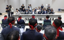 지난달 30일 경기 수원시 영통구 경기지방노동위원회에서 경기도버스노동조합협의회(노조)와 경기도버스운송사업조합(사측)의 최종 조정회의가 열리고 있다. 뉴스1 경기도 전체 버스 노동자의 90%가량이 속한 경기도버스노조협의회가 1일 사용자 단체인 경기도버스운송사업조합와…