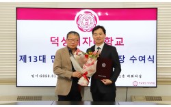 덕성여대 제13대 민재홍(우) 신임총장이 이종구(좌) 이사장으로부터 임용장을 수여받은 후 기념촬영을 하고 있다. 학교법인 덕성학원(이사장 이종구)은 2025학년도 제12차 이사회(2026.1.28.) 의결에 따라 덕성여자대학교 제13대 총장에 글로벌융합대…