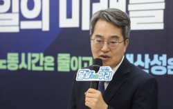 김동연 경기도지사가 지난달 28일 오전 경기도 구리시의 주 4.5일제 참여기업을 방문해 인사말을 하고 있다. 연합뉴스 김동연 경기도지사는 2일 신천지가 지난해 4월 더불어민주당 대선 경선 과정에서 이른바 ‘반명 후보’에게 접근했다는 일부 언론 보도와 관련…