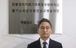 안권섭 특별검사가 지난해 12월 6일 서초구 사무실에서 열린 특검팀 현판식에서 각오를 말하고 있다. 연합뉴스 ‘쿠팡 일용직 노동자 퇴직금 미지급 사건’과 ‘관봉권 띠지 분실 사건’을 수사해 온 상설특별검사팀이 5일 약 90일간의 수사를 마무리하고 공소유지…