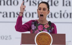 지난해 1월 12일 클라우디아 셰인바움 멕시코 대통령이 취임 100일 기념 행사에서 연설하고 있다. AP=연합뉴스 클라우디아 셰인바움 멕시코 대통령이 12일(현지시간) 자신의 엑스(X·옛 트위터)에 토널드 트럼프 미국 대통령과 전화 통화를 했다고 밝히고 멕시코에 …