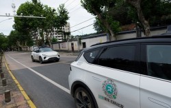 지난해 7월 19일 중국 IT기업 바이두의 로보택시 서비스인 아폴로 고의 자율주행 차량(로보택시)이 중국 후베이성 우한의 도로변에 주차된 다른 아폴로 고 로보택시를 지나가고 있다. 로이터=연합뉴스 중국의 자율주행 로보택시가 이르면 내년부터 유럽 전역을 누…