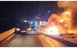 10일 서산영덕고속도로 경북 구간에서 다중 추돌 사고가 발생해 5명이 숨지고 8명이 다쳤다. 사진은 추돌 사고로 승용차가 불에 타고 있는 모습. 사진 경북소방본부 5명이 숨진 서산영덕고속도로 16중 다중추돌사고와 관련해 국토교통부가 한국도로공사에 대한 감사에 착수…