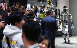 CES 2026이 열리고 있는 미국 네바다주 라스베이거스 컨벤션센터(LVCC) 현대자동차 부스에서 관람객들이 로봇 아틀라스 시연을 지켜보며 휴대폰으로 촬영하고 있다. 연합뉴스 세계 최대 가전·정보기술 전시회 ‘소비자 가전쇼(CES 2026)’에서 휴머노이…