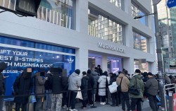 9일 서울 마포구 홍대입구역 인근 대형 신발 매장 무신사킥스 앞은 인파로 북새통을 이뤘다. 매장 앞에서 고객들이 입장을 기다리고 있다. 김세린 기자 9일 오전 11시, 서울 마포구 홍대입구역 인근 대형 신발 매장 앞은 인파로 북새통을 이뤘다. 영하의 추위…