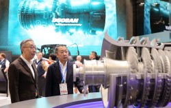 박정원 두산그룹 회장(오른쪽)과 박지원 부회장이 7일(현지시간) ‘소비자 가전쇼(CES 2026)’ 현장에서 두산 부스에 전시된 가스터빈 모형을 살펴보고 있다. [사진 두산] 박정원 두산그룹 회장이 미국 라스베이거스에서 열린 세계 최대 가전·정보기술(IT…