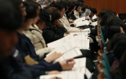 지난해 12월 서울 종로구 성균관대 600주년 기념관 새천년홀에서 종로학원 주최로 열린 '2026 정시 합격 가능선 예측 및 지원전략 설명회'에서 학부모와 수험생이 설명을 듣고 있다. 연합뉴스 서울대 정시모집 합격자 중 일반고 출신 비율이 최근 11년 사이 최고치…