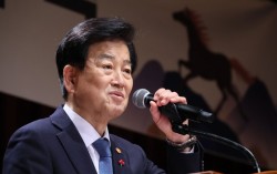 정동영 통일부 장관이 2일 서울 종로구 정부서울청사 별관에서 열린 통일부 새해 시무식에서 신년사를 하고 있다. 정 장관은 이날 "올해를 적대적 관계 청산 원년으로 삼자"며 대화를 제안했다. 연합뉴스 정동영 통일부 장관이 2일 신년사에서 북한을 향해 "올해는 적대…