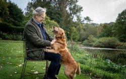 지휘자 존 엘리엇 가디너(83)는 미소를 띠고 화면에 나타났다. 그의 뒤 넓은 창문 밖으로 초록색 숲이 멀리 펼쳐져 있었다. 창의 한쪽 옆에는 요한 세바스티안 바흐의 초상화가 걸렸다. 영국 도싯에서 반려견과 함께 지내고 있는 지휘자 존 엘리엇 가디너. 사진 프레스토 컴…