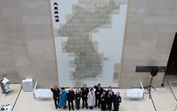 유홍준 국립중앙박물관장(왼쪽 다섯번째)이 12일 서울 용산구 국립중앙박물관에서 열린 국립중앙박물관 역사의 길 '대동여지도를 펼치다' 개막 행사에서 참석자들과 기념촬영을 하고 있다. 연합뉴스 고산자 김정호(1804~1866)가 두 발로 한반도를 누비며 18…