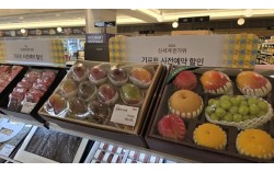 2일 서울 영등포구에 위치한 신세계백화점 타임스퀘어점에 전시용 추석 선물세트 모형이 진열돼있다. 노유림 기자 2일 오전 서울 영등포구에 위치한 신세계백화점 타임스퀘어점. 추석을 한 달 남짓 앞뒀지만 과일 코너에는 사전예약 안내문과 함께 다양한 선물세트가…