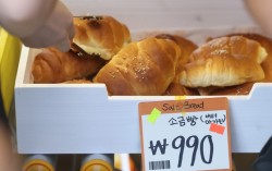 지난 2일 오전 서울 성동구 글로우 성수에 마련된 유튜버 '슈카월드'의 베이커리 팝업 스토어 ETF베이커리를 찾은 시민들이 990원에 판매되는 소금빵을 고르고 있다. 뉴시스 국내 빵값이 6개월 연속 6%대 고공행진을 이어가며 소비자 부담이 커지고 있다. …