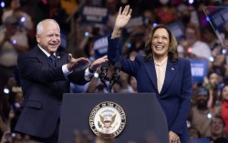 2024년 8월 6일(현지시간) 당시 미국 민주당 대통령 후보 카멀라 해리스 부통령(오른쪽)과 부통령 후보 팀 월즈 미네소타 주지사가 펜실베이니아주 필라델피아 탬플대학교에서 합동 유세를 벌이고 있다. EPA=연합뉴스 2024년 미국 대선에서 민주당의 러닝…