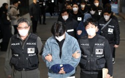 캄보디아에서 대규모 스캠 범죄를 저질러 강제 송환된 한국인 피의자들이 23일 오후 부산 동래구 동래경찰서로 압송되고 있다. 뉴스1 지난 1월 말 캄보디아서 전세기로 강제 송환된 조직원 52명이 노쇼 사기로 71억을 가로챈 것으로 드러났다. 부산경찰청 캄보디아…