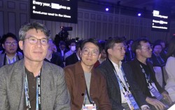 5일(현지시간) 미국 라스베이거스 베네시안 호텔에서 열린 리사 수 AMD 최고경영자(CEO)의 CES 2026 기조연설 현장을 찾은 곽노정 SK하이닉스 대표이사 사장과 SK하이닉스 임원들. 좌측부터 이상락 SK하이닉스 글로벌 세일즈마케팅 담당 부사장, 김성섭 미주법인 …
