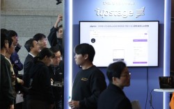 지난해 12월 30일 서울 강남구 코엑스에서 열린 '독자 AI 파운데이션 모델' 프로젝트 1차 발표회에서 참석자들이 업스테이지 부스를 둘러보고 있다. 연합뉴스 ‘국가대표 AI’ 선정 사업에 참여 중인 업스테이지가 자체 개발한 거대언어모델(LLM) ‘솔라 오픈 10…