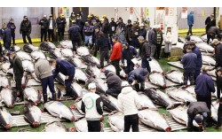 5일 도쿄 고토구 도요스시장에서 신년 첫 참치 경매가 열리고 있다. 연합뉴스 일본 도쿄 수산물 시장인 도요스시장에서 5일 진행된 신년 첫 참치 경매에서 역대 최고치가 경신됐다. NHK와 교도통신 등에 따르면 도요스시장에서 이날 오전 개최된 경매에서 …