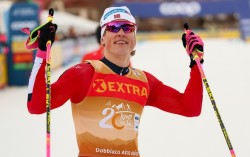 지난달 28일 크로스컨트리 월드컵 스프린트 우승 후 기뻐하는 요하네스 클레보. [EPA=연합뉴스] 지난 25일(현지시간) 스위스 곰스에서 열린 국제스키연맹(FIS) 크로스컨트리 월드컵 매스스타트 20㎞ 현장. 숨 가쁘게 눈길을 가르던 노르웨이 선수 한 명…
