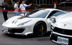 2일(현지시간) 대만 타이베이에서 캄보디아 사기 조직 프린스그룹과 연관된 고급 차량 경매가 열린 가운데, 관람객들이 람보르기니 우루스와 페라리 488피스타를 촬영하고 있다. 로이터=연합뉴스 국제 온라인 금융사기(보이스피싱) 조직으로 지목된 프린스그룹의 압류 자산…