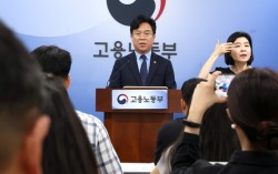 김영훈 고용노동부 장관이 1일 정부세종청사 고용노동부 브리핑실에서 업무상 질병 산재 처리 기간 단축 방안에 관해 설명하고 있다. 연합뉴스 고용노동부가 15년 만에 ‘노동부’ 약칭을 부활시키기로 했다. 김영훈 고용노동부 장관은 1일 취임 후 첫 기자간담회에…