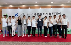 김봉빈 한국동서발전 안전기술부사장(오른쪽 6번째)와 국가품질혁신경진대회 참가자들이 기념사진을 찍고 있다. 한국동서발전(주)(사장 권명호)는 이달 25일(월)부터 29일(금)까지 제주국제컨벤션센터에서 열린 ‘제51회 국가품질혁신경진대회’에서 대통령상 5개를…