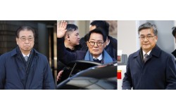 '서해 공무원 피격 사건' 은폐 시도 및 '월북 몰이' 혐의로 기소된 서훈 전 국가안보실장(왼쪽부터), 박지원 전 국가정보원장, 서욱 전 국방부 장관이 26일 오후 서울 서초구 서울중앙지방법원에서 열린 '서해피격 은폐 의혹' 1심 선고 공판에서 무죄를 선고받은 후 소감…