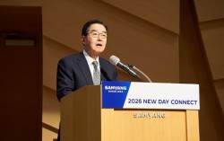 김윤 삼양그룹 회장이 지난 2일 판교 디스커버리센터에서 열린 '2026년 삼양 뉴 데이 커넥트'에서 임직원들에게 신년 메시지를 발표하고 있다. 사진 삼양그룹 불황으로 어려움을 겪어온 석유화학·배터리 업계가 글로벌 신시장 개척으로 돌파구 찾기에 나섰다. …