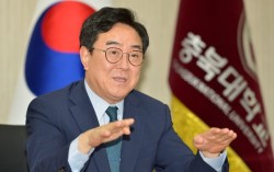 대학, 글로컬이 미래다 ⑥ 고창섭 충북대 총장 인터뷰 고창섭 충북대 총장은 지난 19일 대학 총장실에서 진행한 중앙일보와의 인터뷰에서 “대학이 지역의 구심점이 돼야 한다”고 말했다. 김성태 객원기자 “이제는 대학이 지역의 미래를 책임지는 혁신 엔진 역할…