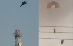 2일(현지시간) 쿠웨이트 내 미군기지 상공에서 전투기가 추락하는 모습을 포착한 영상(왼쪽)과 추락한 전투기에서 낙하산을 타고 비상 탈출하는 모습. 사진 CNN 캡처 미국과 이스라엘의 대(對)이란 군사작전이 이어지는 가운데 2일(현지시간) 쿠웨이트에서 미군…