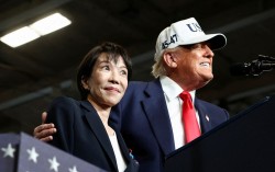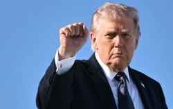 도널드 트럼프 미국 대통령이 1일(현지시간) 플로리다주 팜비치 국제공항을 떠나 워싱턴 DC 백악관으로 돌아가는 길에 대통령 전용기에 오르며 취재진을 향해 주먹 인사를 하고 있다. AFP=연합뉴스 도널드 트럼프 미국 대통령은 1일(현지시간) ‘장대한 분노 …