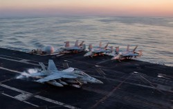 지난달 28일(현지시간) 미 해군 F/A-18F 슈퍼호넷 전투기가 작전 지원을 위해 에이브러햄 링컨함(CVN-72)에서 강제 착함을 준비하고 있다. AP=연합뉴스 미국과 이스라엘의 대이란 공습이 단기적으로는 핵 위협을 낮출 수 있지만, 장기적으로는 오히려…