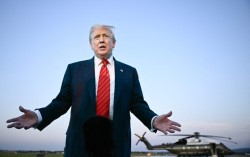 도널드 트럼프 미국 대통령이 3일(현지시간) 펜실베이니아주 앨런타운의 리하이밸리 국제공항에서 취재진들과 대화하고 있다. AFP=연합뉴스 도널드 트럼프 미국 대통령이 4일(현지시간) 인도가 러시아산 석유 구입 문제를 지적하며 인도에 대한 관세를 대폭 올릴 것이라고 …