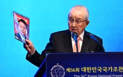 김장환 극동방송 이사장(수원중앙침례교회 목사)가 지난해 11월 22일 서울 중구 신라호텔에서 열린 제56회 국가조찬기도회에서 설교하고 있다. 대통령실사진기자단 채상병 사건 외압·은폐 의혹을 수사 중인 이명현 순직해병 특별검사팀이 김장환 목사(극동방송 이사…
