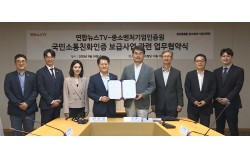 엄진엽 중소벤처기업인증원 원장(가운데 왼쪽)과 안수훈 연합뉴스TV 대표이사(가운데 오른쪽)를 비롯해 양 기관 주요 관계자들이 지자체 및 공공기관의 국민소통 활성화를 위한 업무협약을 체결한 후 함께 기념촬영을 하고 있다. 중소벤처기업인증원(원장 엄진엽, K…