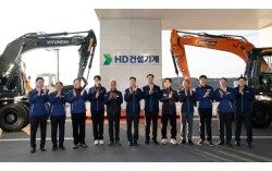 정기선 HD현대 회장(왼쪽에서 여섯번째)이 1일 울산에서 열린 HD건설기계 현판 제막식에서 문재영 사장(왼쪽에서 일곱번째) 등 경영진과 함께 기념 촬영을 하고 있다. HD건설기계는 HD현대건설기계와 HD현대인프라코어 간 합병 절차를 마치고 이날 공식 출범했다. [사진 …