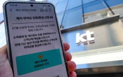 지난달 31일 KT가 앱을 통해 고객에게 안내한 해지 위약금 관련 메시지. 연합뉴스 KT가 해킹 사태 관련 보상안으로 전 고객 대상 계약 해지 위약금 면제를 시작한 첫날, 1만명이 넘는 가입자가 빠져나갔다. 1일 통신업계에 따르면 전날 이동통신 시장 내에서 …