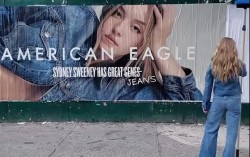 1일 미국 뉴욕 아메리칸 이글 매장에 전시된 시드니 스위니의 광고 캠페인 포스터. AP=연합뉴스 “시드니 스위니는 멋진 청바지를 갖고 있다(Sydney Sweeney has great jeans)” 할리우드 배우 시드니 스위니(27)가 출연한 미국 …