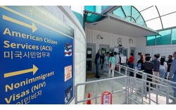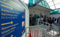 서울 종로구 주한미국대사관 앞에 미국 비자를 발급 받으려는 시민들이 줄 지어 서 있다. 뉴스1 미국에서 일과 언어를 배우는 기회로 활용되는 J-1(비이민 교환방문) 비자 제도가 '현대판 노예제'처럼 운영되는 사례들이 나오고 있다고 뉴욕타임스(NYT)가 25일(현지…