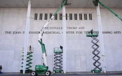 지난 19일(현지시간) 미국 워싱턴 DC 존 F 케네디 기념 공연예술센터에서 작업자들이 건물 외벽에 새겨진 센터 이름을 ‘도널드 J 트럼프-존 F 케네디 기념 공연예술센터’로 바꾸고 있다. AP=연합뉴스 미국 수도 워싱턴 DC를 대표하는 문화예술 공연장 …