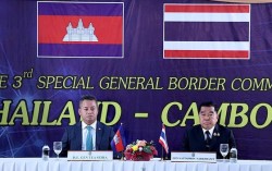 27일 태국과 캄보디아 국경 검문소에서 티 세이하(왼쪽) 캄보디아 국방장관이 나타폰 나크파닛(오른쪽) 태국 국방부 장관과 휴전협정을 체결했다. EPA 미국이 실패했던 태국과 캄보디아의 휴전을 정착시킬 ‘피스 메이커’ 역할을 중국이 추진하고 있다. 왕이(…